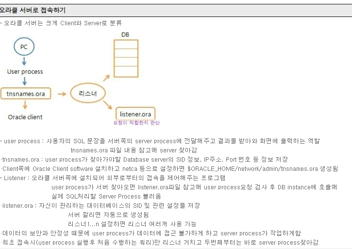 이렇게 접속을 만들기 전에 tnsnames.ora 파일과 listener파일을 따로 설정해줘야한다. 오라클에서 네트워크를 통해 원격접속을 하려면 오라클 폴더의 설정파일을 수정해줘야하기 때문이다. (->https://oracle.tistory.com/87) 그 다음 DBlink를 설정해주면 DB를 공유할 수 있다!