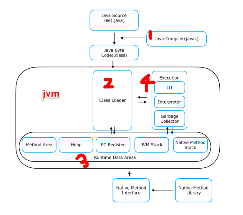 1. 컴파일러가 소스코드를 컴파일해서 클래스파일로 만들고 난 뒤, 클래스파일을 실행한다.